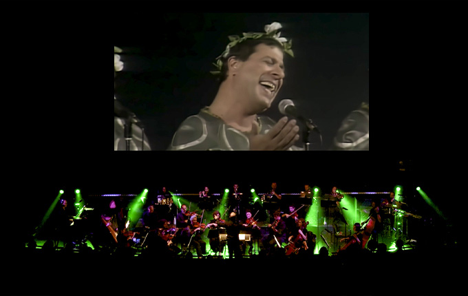The orchestra accompanies the screened sketches with live music that has been adapted in a unique, original and surprising way, sometimes through a change in the original sketch’s plot and sometimes in the way the orchestra integrates into it.